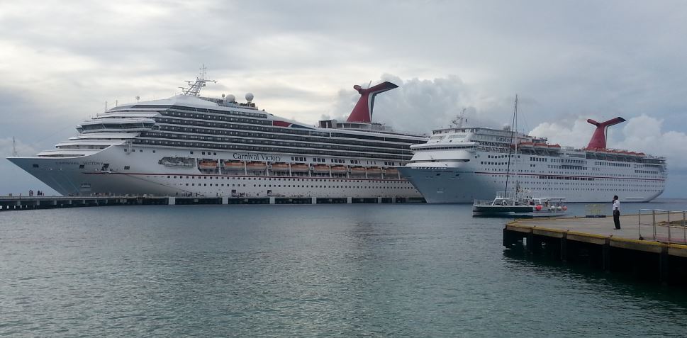 We are now docked at the port in Cozumel Mexico! Sounds like some of our group will be enjoying the shore excursion's like snorkeling and boat trips around the island. One couple I spoke with said they might try the Mayan ruins tour and some snorkeling. Kathy and I both enjoyed the snorkeling allot the last time we came to Cozumel but the Mayan ruins were disappointing. They claim if you really want to see anything you need to visit the main land. This being our second trip to Cozumel we plan to stick to the shops and maybe a little beach visiting, not much sun out today but I'm sure it's still enough to get burnt. Maybe after the shore leave we can do some more cigar bar and comedy club. I see some speed boats whizzing by from my balcony and the water actually looks somewhat clear. Wasn't sure how the water visibility would be with the hurricanes and stormy weather forecast. Our trip has been really calm weather but I noticed the water did get a little rougher the closer we got to Mexico.