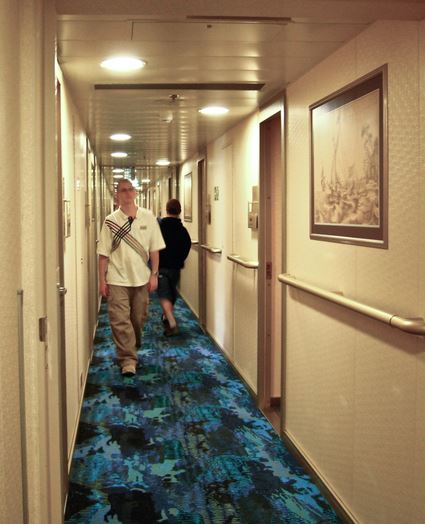 I found the crew quarters interesting, they sometimes share a cabin with approximately 2 or even 4 crew members, married couples and even couples who are not married are automatically placed together by Carnival's policy. In the crew lounge I saw many clocks with times from around the world, chess, a dart board, Foosball table, computers and television sets. The crew get to purchase drinks for $1.25 and food is free. There is a zero tolerance for alcohol for crew members, although they are allowed to drink there are alcohol levels they are not allowed to be above that change depending on the situation. The pay for the crew sounds pretty good, with a retirement plan and benefits. One of the dancers told me that although she might work 8 or 10 hours in a given day it won't be all at once. Might be a couple hours on then a few off then back on throughout the day. On average they don't make any OT pay until after 70 hours.