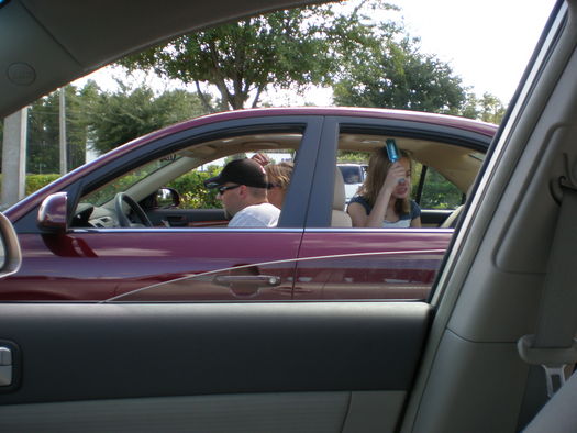 Kathy and Jodi in the shuttle on the way to the rental car place in Orlando...